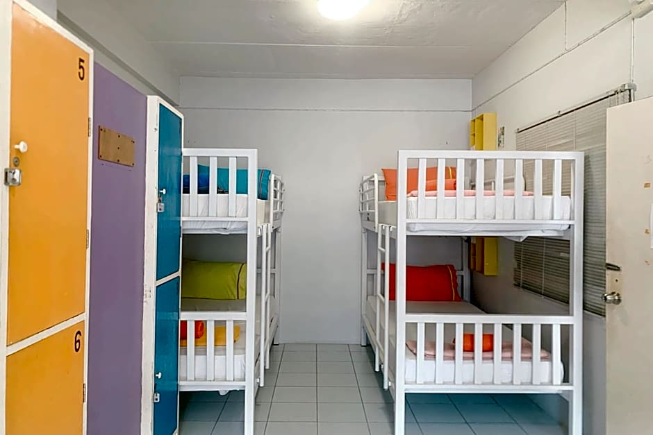 Private Twin Bunk Bed with A/C is 118 square feet and includes either bunk beds or 2 single beds 80-130 width plus desk, hairdryer, ironing set, and slippers.